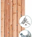 Red Class Tuindeur 100x195cm, bestaande uit 11 geschaafde Red Class planken van 1,6x14cm aan weerszijden geschroefd op een stalen poortframe. Inclusief RVS deurbeslag en SKG**cilinderslot.Red Class is een duurzaam en goedkoper alternatief voor Douglas tuinhout.Het vuren hout wordt eerst kunstmatig gedroogd voordat het wordt geschaafd en rood geimpregneerd. Daardoor is het hout stabieler en maatvaster tijdens verwerking en gebruik. De warme lichtrode Douglaskleur blijft veel langer behouden dan Douglas hout.